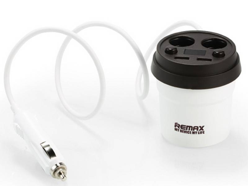 Remax Coffee Cup CR-2XP is an amazing car charger with demitasse design. Made of high-quality materials (PC + ABS) useful hub with dual USB ports and dual cigarette lighters. Allows to simultaneous charging couple devices. Also, thanks to two independent power switch you can press once to switch on/off instead of repeated plugging and unplugging. It has real-time voltage display, long cable and intelligent management chip that effectively protects from overcharge and short circuit.
