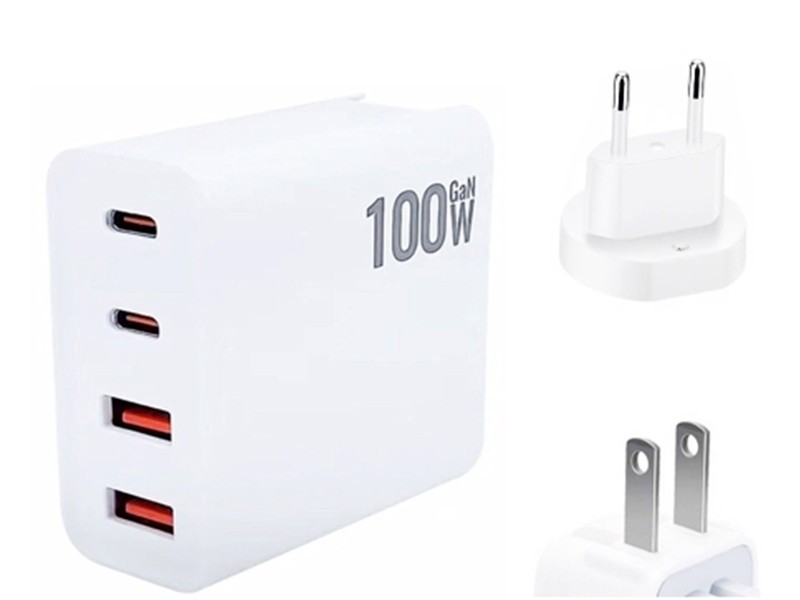 Battery Charger 100W Fast Charger 2 Usb + 2 Usb Type C White USA/UE Plug