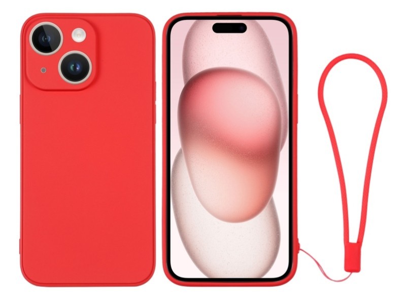 Silicone Case Red + Wrist Strap iPhone 15