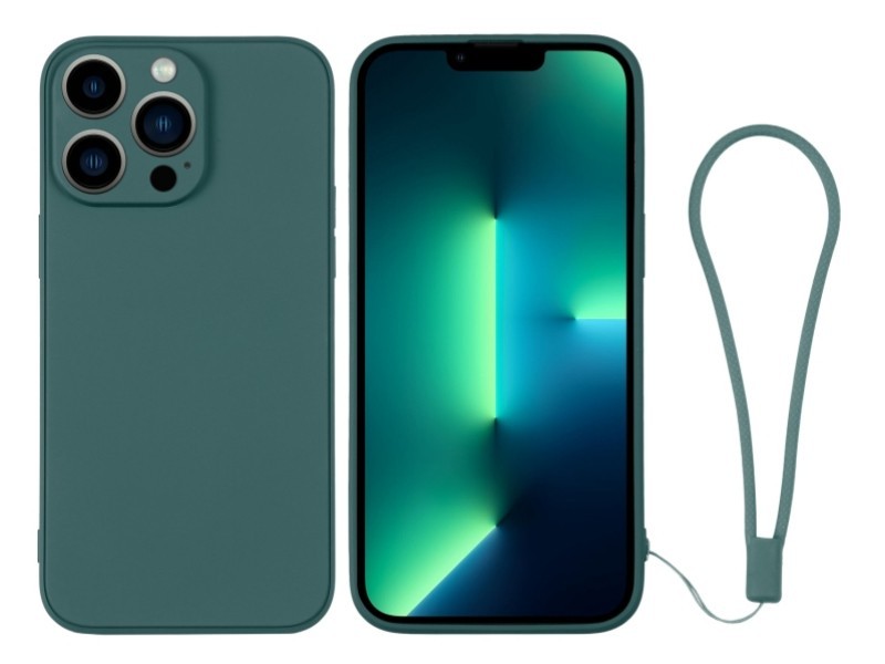 Silicone Case Dark Green + Wrist Strap iPhone 13 Pro Max