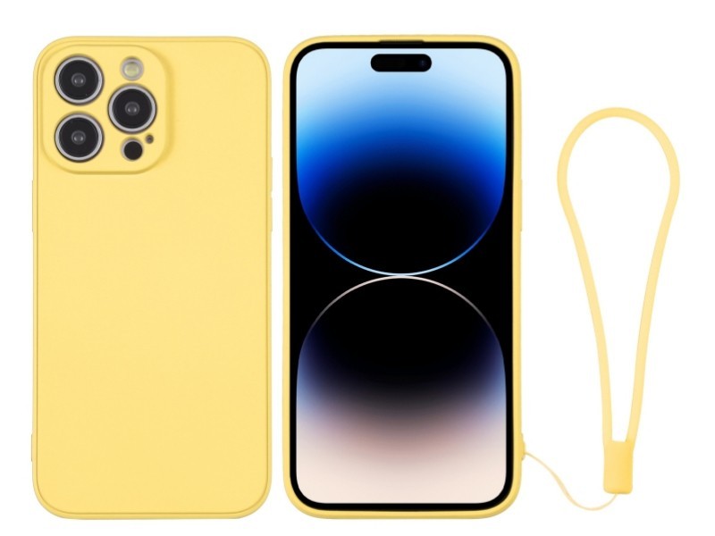 Silicone Case Yellow + Wrist Strap iPhone 14 Pro