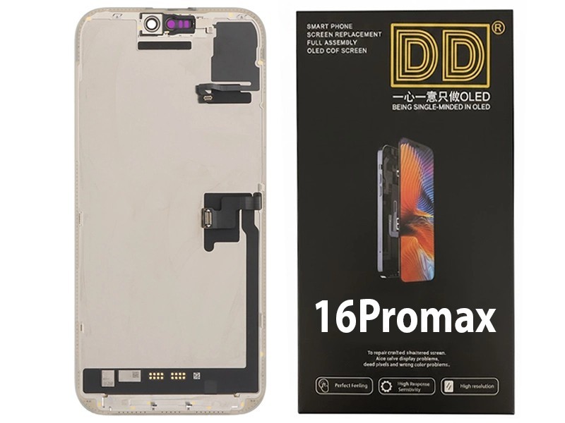 The HARD OLED DD display for iPhone 16 Pro Max is the professional solution that combines rigid panel durability with Apple flagship performance. Thanks to DD (Diagnosticable) technology, the integrated IC allows the system to recognize the replacement without the need for an original chip swap, maintaining full 120Hz ProMotion fluidity across the entire screen.