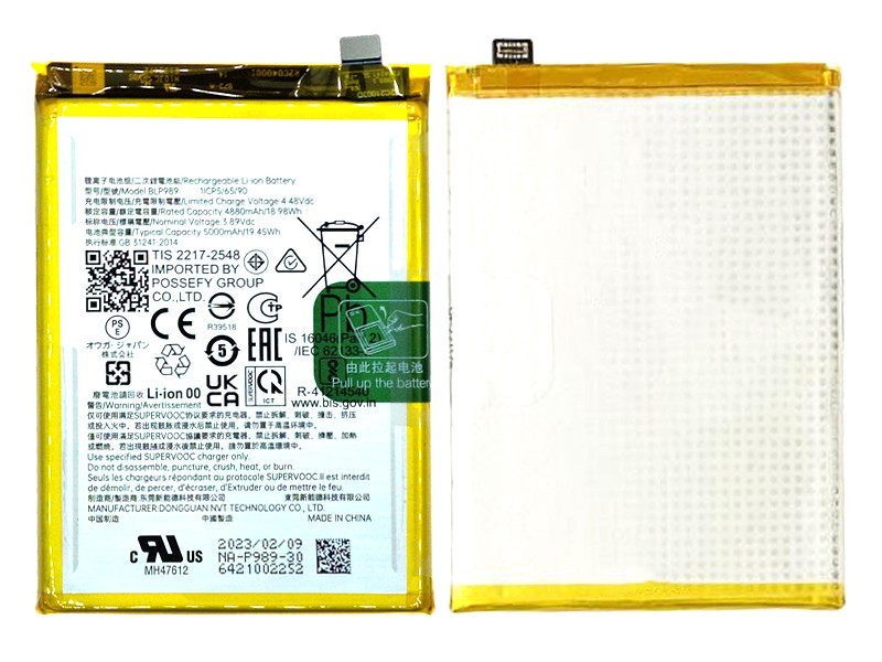 Battery BLP989 5000mAh OPPO A98 5G - OnePlus Nord CE 3 Lite 5G No Logo