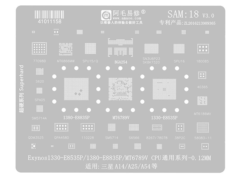 Amoe SAM:18 0.12MM Stencil Samsung SM- A14 - A25 - A54