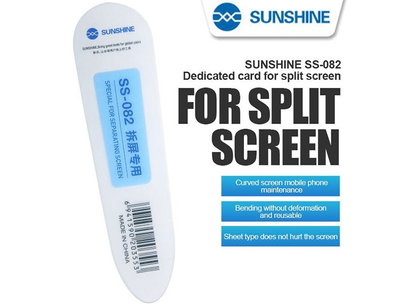 The Sunshine SS-082 is an essential tool for every technician working on latest-generation smartphones with curved screens or extremely tight frames. Thanks to its ultra-thin profile and high-tech plastic composition, it allows for easy separation of the display from the frame, minimizing the risk of damaging the delicate backlight layer or flex cables.